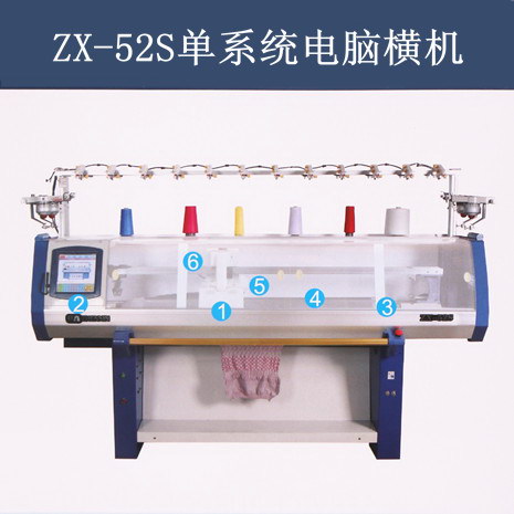 单机头单系统,针板为整体型或插片型,该系列为无起底版装置的全自动电脑编织横机,采用数字化技术,实现横机的翻针、吊目、挑孔、提花、明收针、及其他规则花型编织功能。可编织基本针织组织(四平、单面等)多色无规则提花、绞花等纬编组织,适用于真线、绢丝、合纤丝、羊毛、腈纶、混纺、纱线等原料编织毛纱成衣、围巾、帽子以及服装附件。